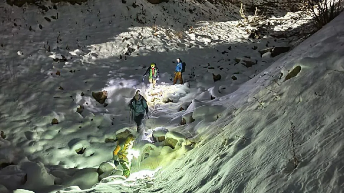 Құтқарушылар өтініш берушілерге жетіп, оларға төменге тау-шаңғы курортына дейін түсуге көмектесі.